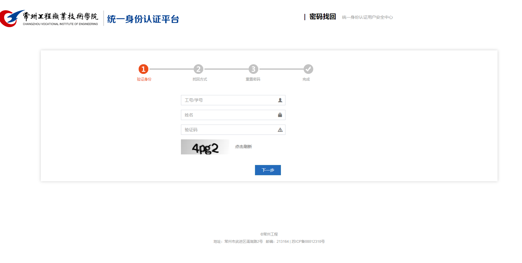 我们统一认证账户采用的是学号或工号作为登陆账号,默认密码采用身份证后六位+@czie。一旦密码忘记,可以通过找回密码功能重置密码,如找回密码过程中遇到问题,可以电话联系051986332222张老师进行密码重置。再次提醒,请及时修改默认密码,密码规则为数字、字母、特殊符号组合。