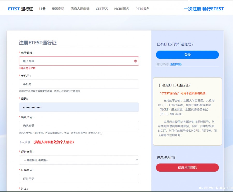 注:电子邮箱、手机号和密码务必填写正确!!