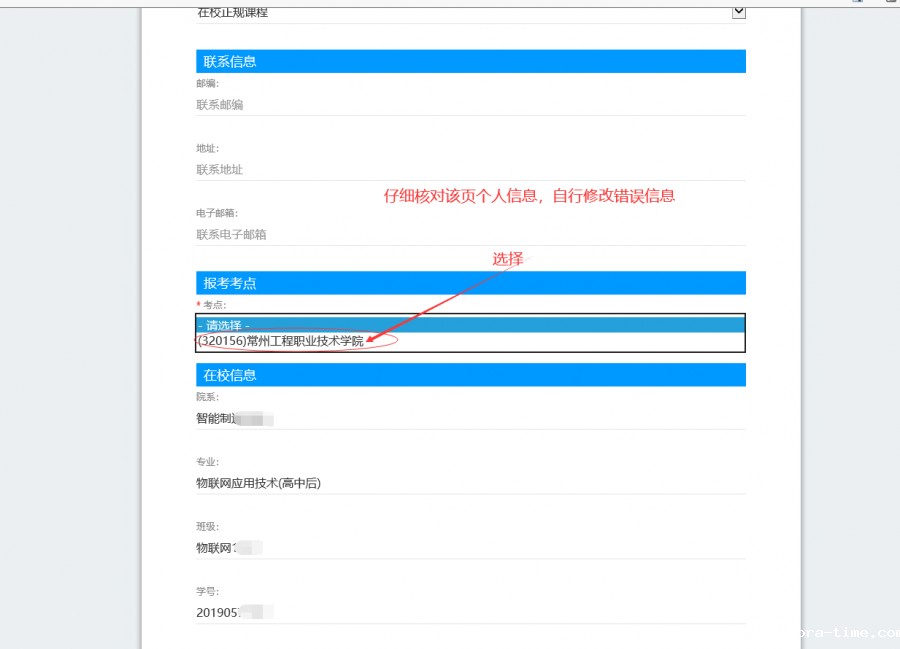 特别提醒:请考生在报名过程中务必注意核对个人信息,如个人信息有问题,请务必在3月10日前打电话咨询0519-86332017或至教学楼B227进行咨询更改。