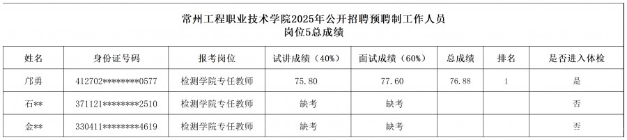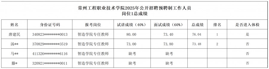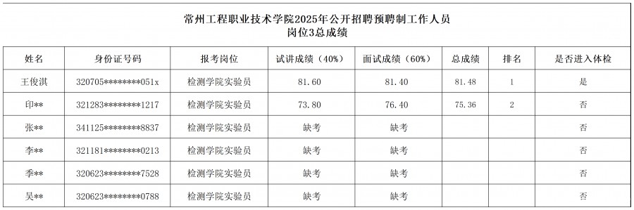 根据2025年8月26日发布的《kaiyun体育网页版官网下载2025年预聘制工作人员公开招聘公告》相关要求,我校组织考核,现将总成绩通知如下: