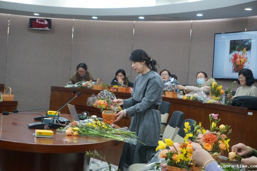 3月5日下午,常州市武进区传统插花非遗传承人李仕蓉老师应邀为通识部女教工做插花艺术讲座专题辅导。在李老师的细心讲授和手把手示范下,通识部女教工学习了解了传统插花的历史来源、艺术形式、技艺特点和艺术价值,并现场进行插花的技艺创作。活动现场,欢声笑语不断,其乐融融。
