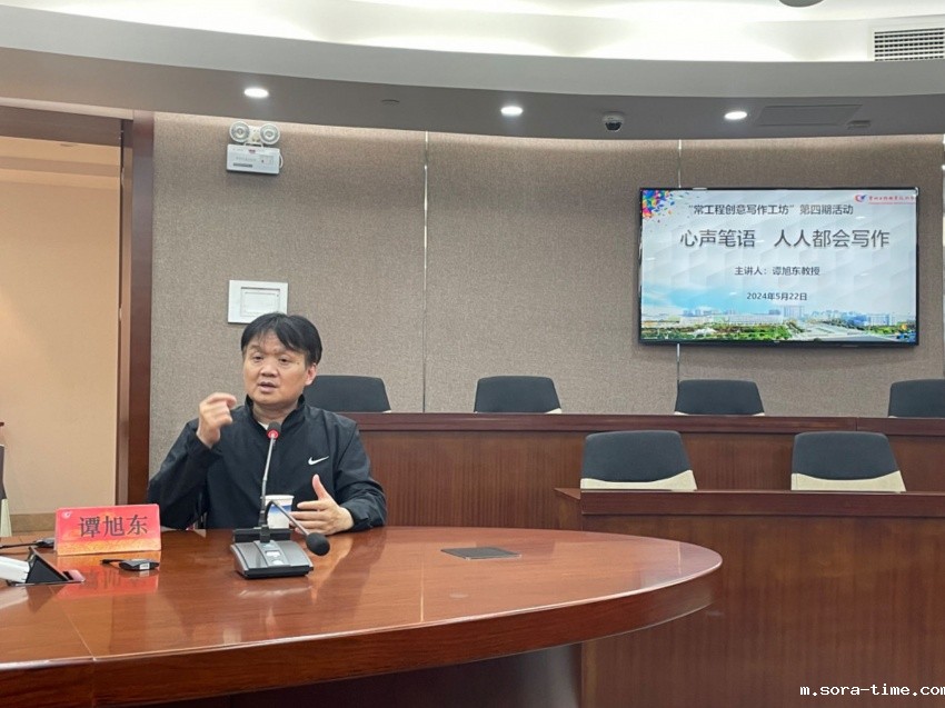 日前,第四期“常工程创意写作工坊”活动在图文楼第二会议室如期举行。上海大学文学院教授、学校特聘教授谭旭东以《心声笔语 人人都会写作》为题,为工坊师生带来一场精彩的报告。
